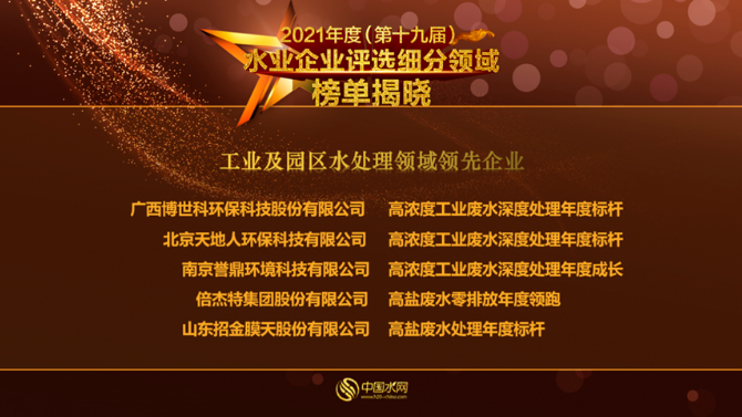 博世科榮獲2021年度“工業及園區水處理領域領先企業”[2022-06-06]