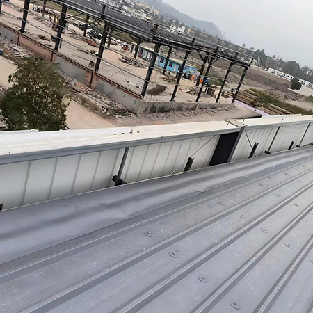 海美防水瓦以鋼板為基板,表面貼覆具有防水防腐功能的TPO/PVC卷材(熱塑性聚烯烴類防水卷材),是海美金屬推出的新一代防水防腐屋面建筑材料。海美防水瓦主要特點就是在各類環境下不易生銹不易漏水,使用熱風焊接進行相連,覆蓋全部裸露的縫隙,在使用過程中可以達到蓄水不滲透的效果,防水效果好,同時還有較好的抗風揭性能和耐老化性能,為鋼結構建筑屋面提供了長久的防護。