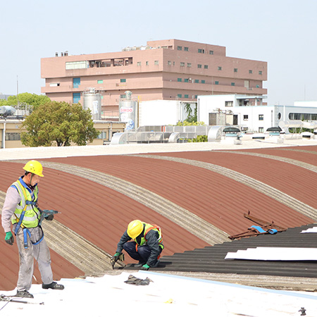 海美防水瓦以鋼板為基板,表面貼覆具有防水防腐功能的TPO/PVC卷材(熱塑性聚烯烴類防水卷材),是海美金屬推出的新一代防水防腐屋面建筑材料。海美防水瓦主要特點就是在各類環境下不易生銹不易漏水,使用熱風焊接進行相連,覆蓋全部裸露的縫隙,在使用過程中可以達到蓄水不滲透的效果,防水效果好,同時還有較好的抗風揭性能和耐老化性能,為鋼結構建筑屋面提供了長久的防護。