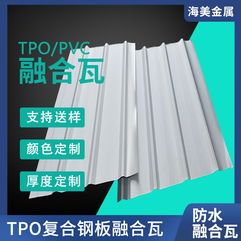 TPO/PVC鋼塑復合防水瓦以鋼板為基板,表面貼覆具有防水防腐功能的TPO/PVC卷材(熱塑性聚烯烴類防水卷材),是一款防水防腐屋面建筑材料。TPO/PVC鋼塑復合防水瓦主要特點就是在各類環境下不易生銹不易漏水,使用熱風焊接進行相連,覆蓋全部裸露的縫隙,在使用過程中可以達到蓄水不滲透的效果,防水效果好,同時還有較好的抗風揭性能和耐老化性