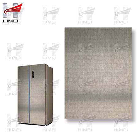 家電用覆膜鋼板,就是鋼板的基材上面覆了一層PET膜/PVC膜,然后通過覆合貼覆而成,主要應用在各類家電外殼裝飾上,例如冰箱、洗衣機、電飯煲等外殼部件。覆膜是一種物理工藝,一層膜一層鋼板經過高溫高壓壓合而成。