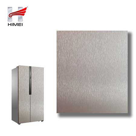 家電用覆膜鋼板,就是鋼板的基材上面覆了一層PET膜/PVC膜,然后通過覆合貼覆而成,主要應用在各類家電外殼裝飾上,例如冰箱、洗衣機、電飯煲等外殼部件。覆膜是一種物理工藝,一層膜一層鋼板經過高溫高壓壓合而成。